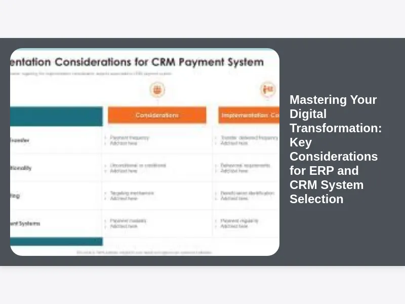 Mastering Your Digital Transformation: Key Considerations for ERP and CRM System Selection
